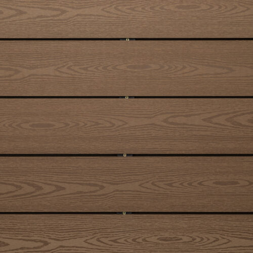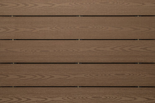 Deck sintético color Cumaru, material composición WPC, acabado texturizado tipo madera.